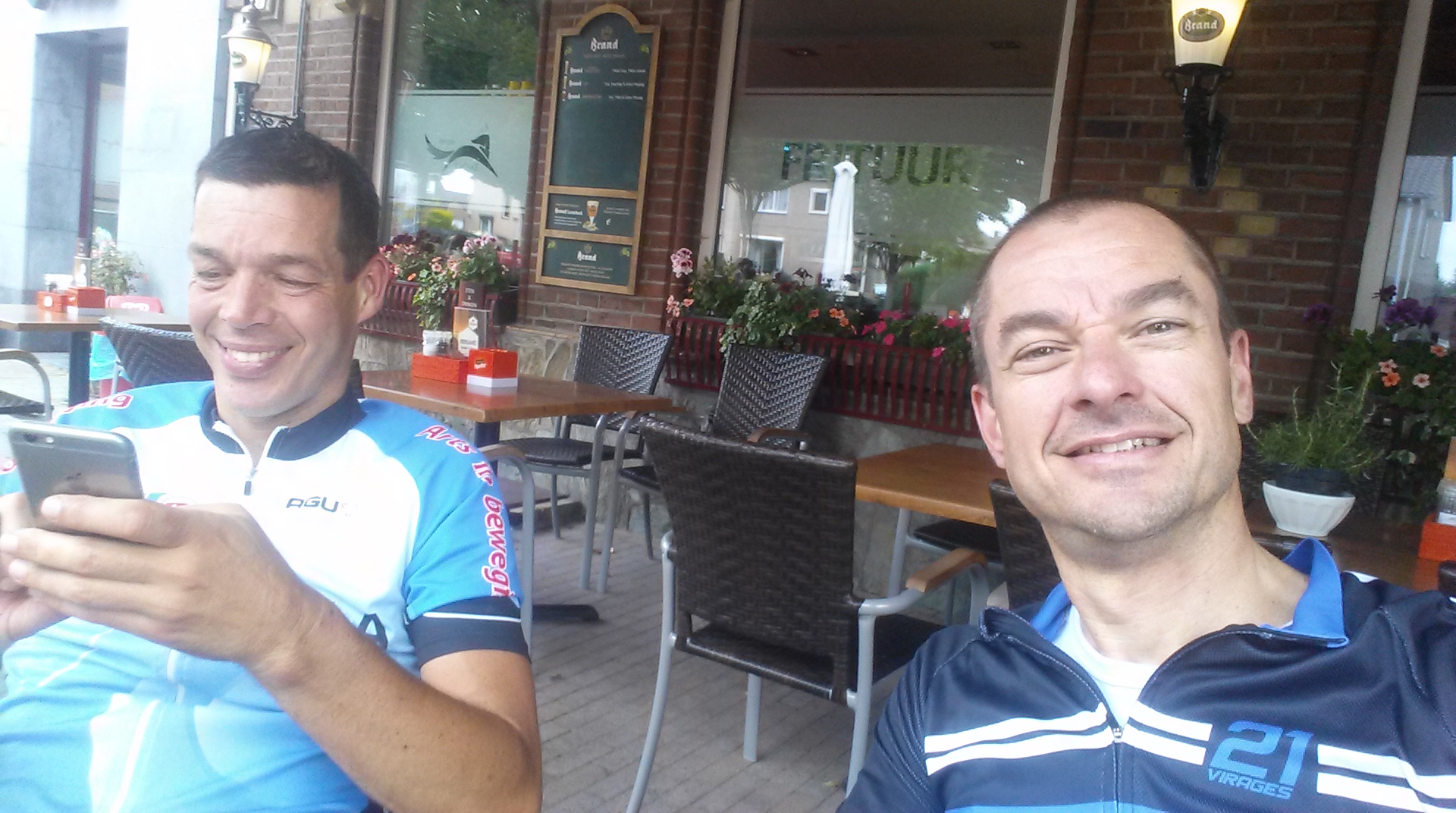 150 km . 5.22 uur…2223 hoogtemeters…28 km p/u gemiddelde. ..Dus heel tevreden wachtend op uitsmijters en een biertje…